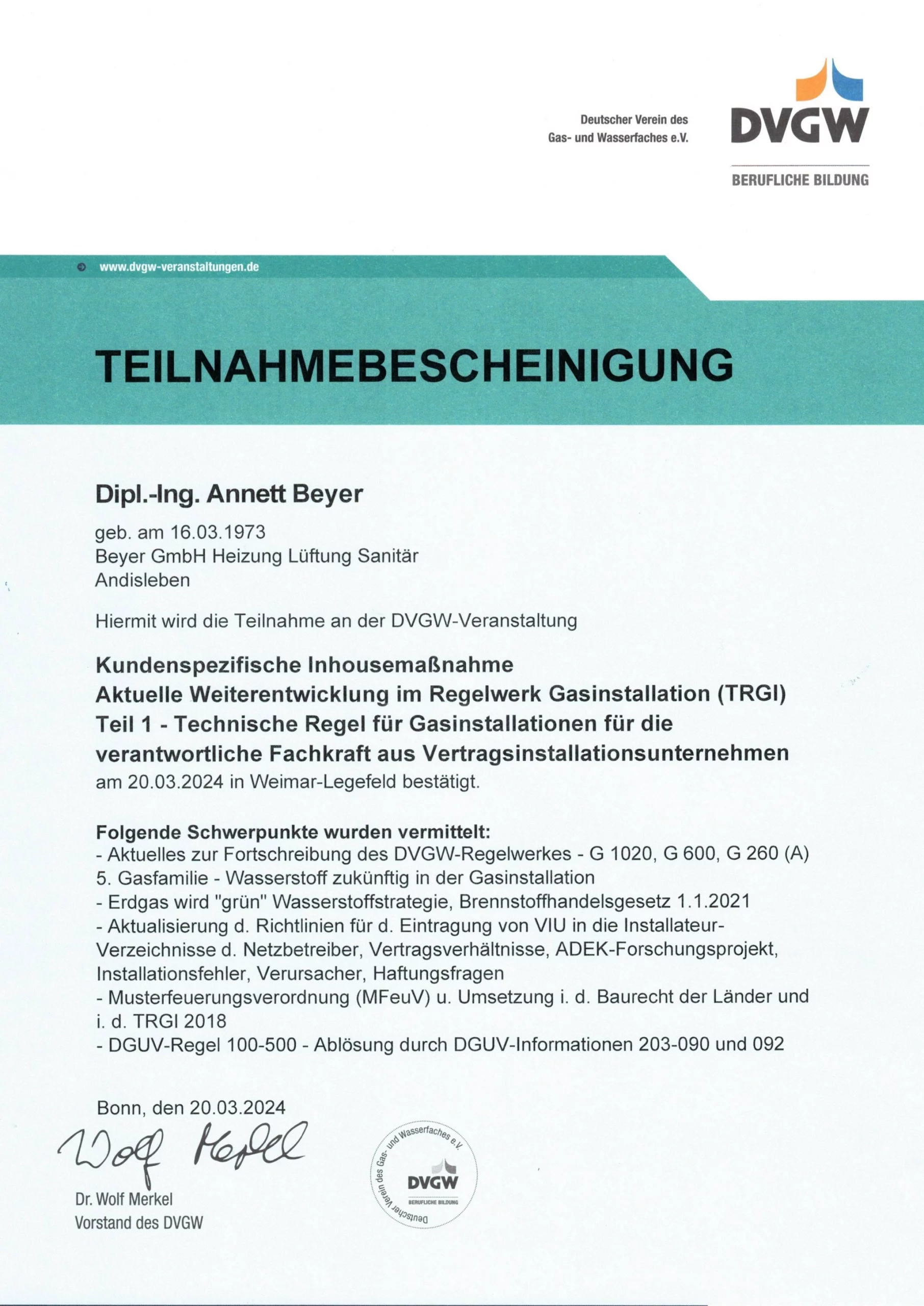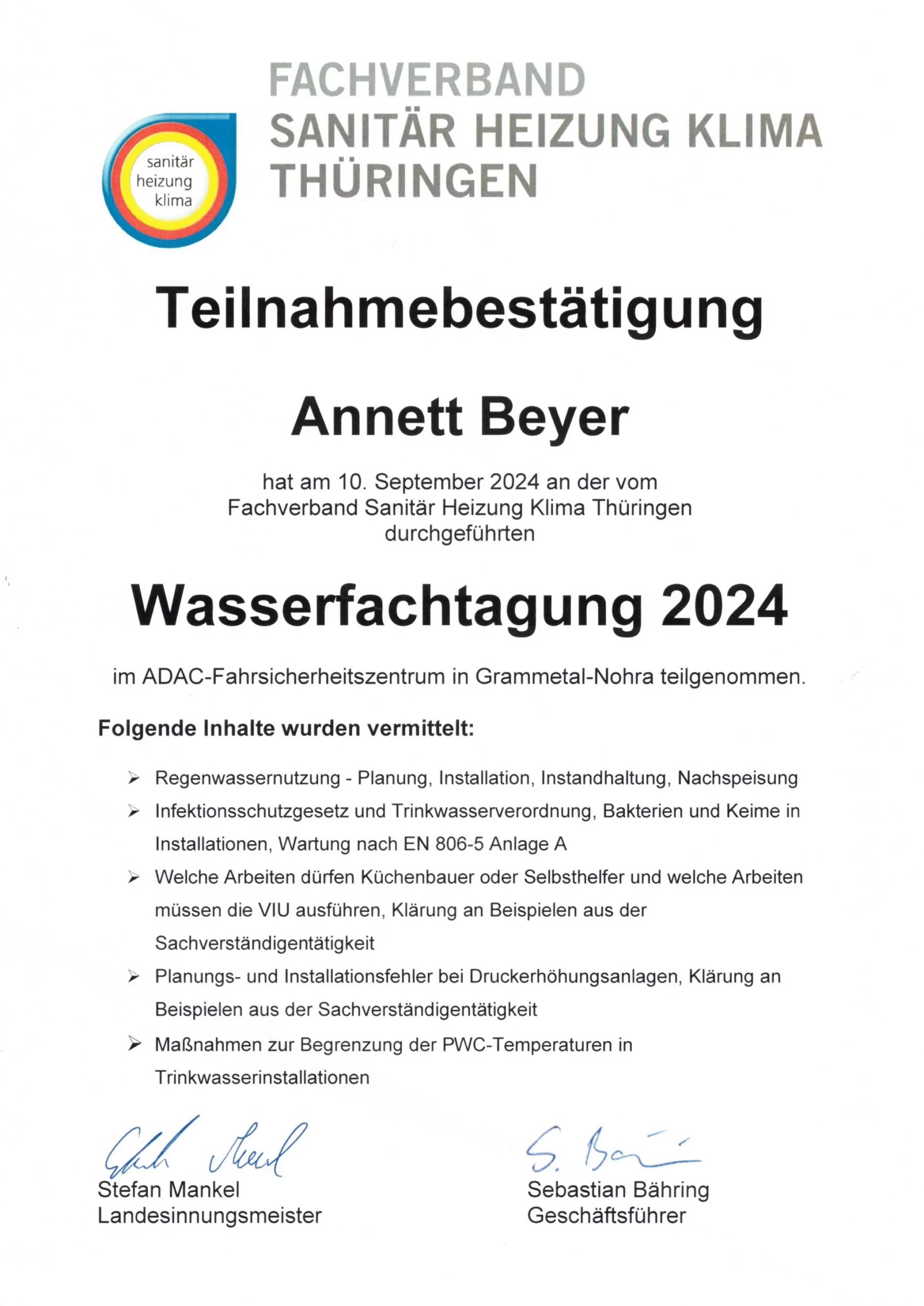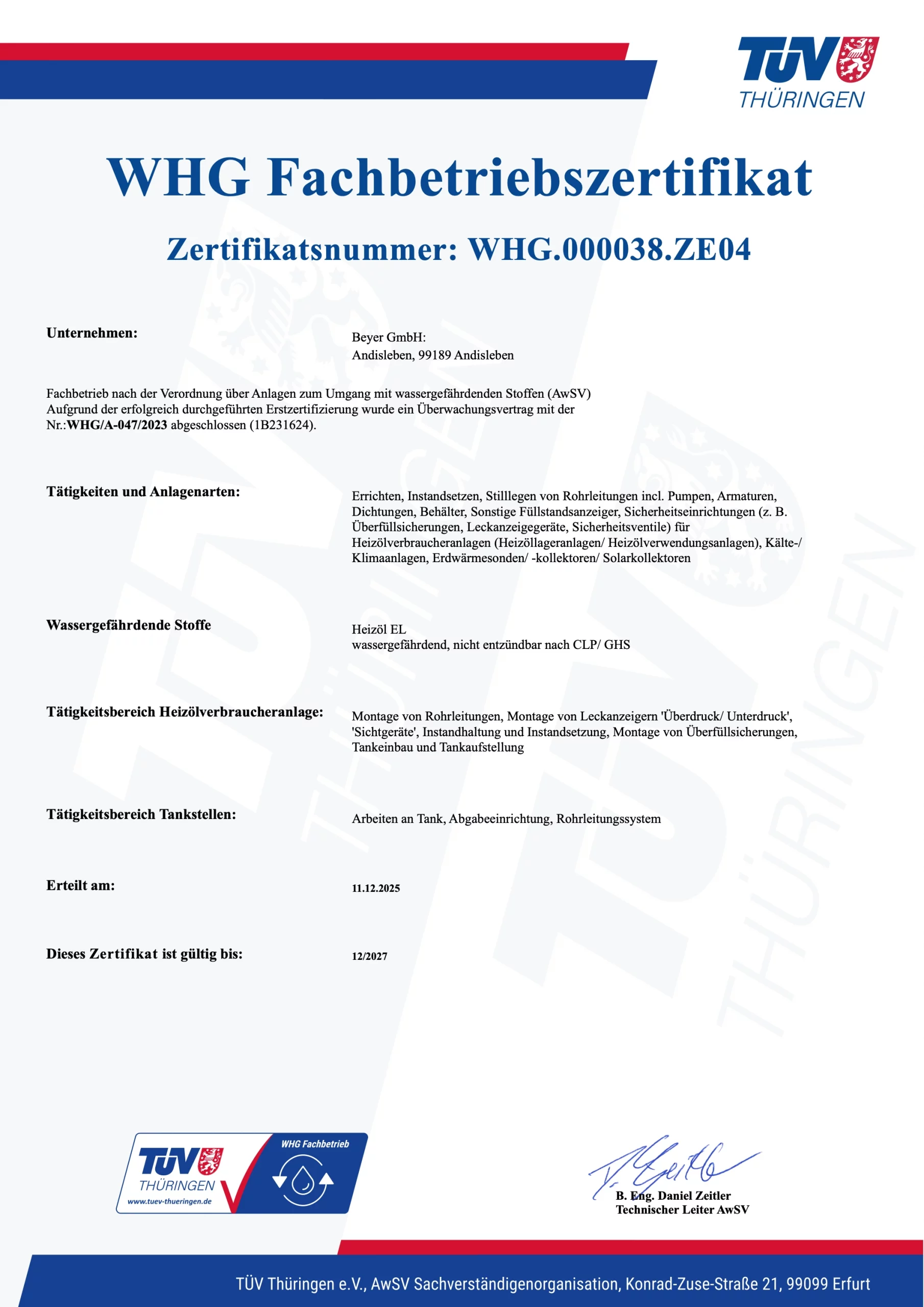 1991 bezog die Firma die heutigen Geschäftsräume in Andisleben. Nach erfolgreich abgeschlossenem Studium zur Diplom-Ingenieurin für Versorgungstechnik unterstützte Tochter Annett Beyer den elterlichen Betrieb und übernahm ihn 2009. 2010 trat auch Sandra Beyer-Helwig in das Familienunternehmen ein. Mit wachsenden Projekten im öffentlichen, gewerblichen und industriellen Bereich wurde 2012 die Beyer GmbH gegründet. Heute führen wir den Betrieb mit rund 10 engagierten Mitarbeitern und verbinden Tradition mit moderner Technik.